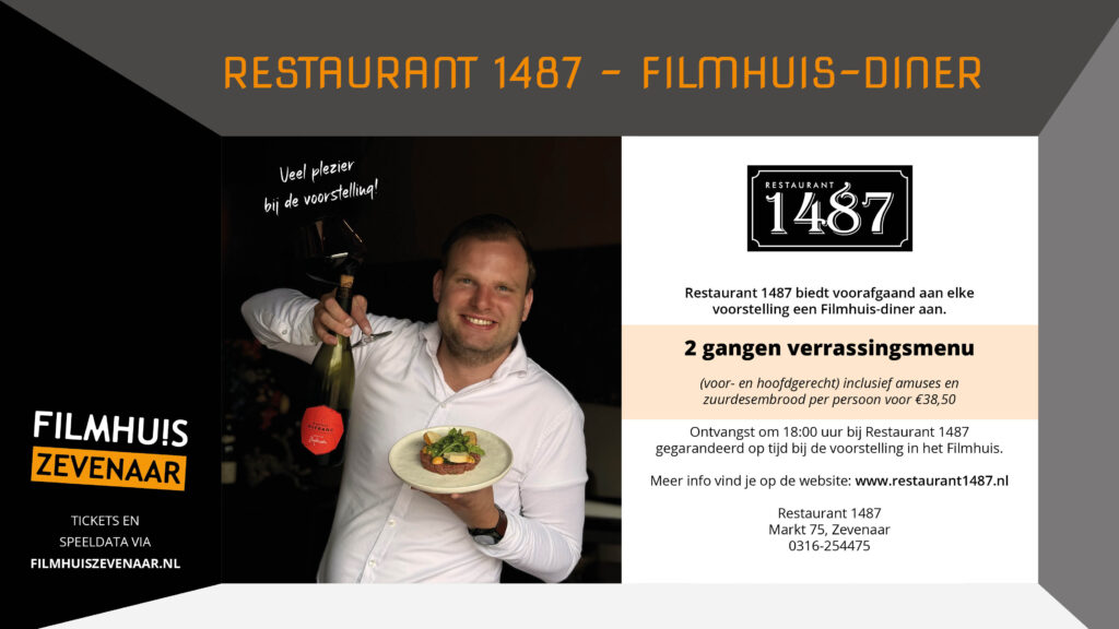 Ontvangst bij Restaurant 1487 om 12:00 uur (lunch) of 18:00 uur (diner) en gegarandeerd op tijd bij uw voorstelling in het filmhuis.